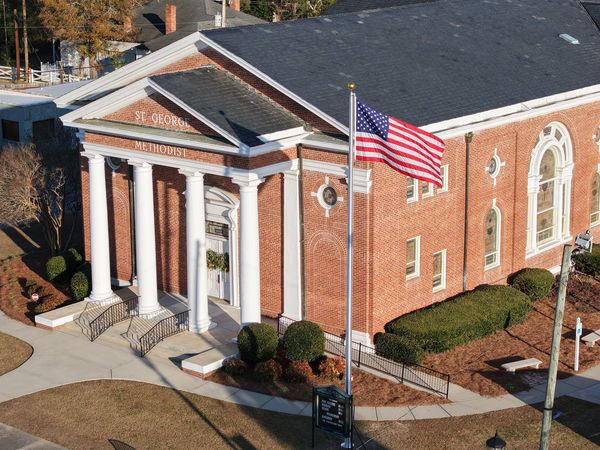 Saint George Methodist Church has a rich and meaningful heritage in the town of Saint George, South Carolina. Uniquely, the church was founded by a Bishop—Rev. William Capers, D.D. of Charleston—who was elected Bishop of the Southern Methodist Church in 1846. Shortly after, he purchased a farm just west of town and built a log chapel beside the main road to Reevesville. Known as Railroad Chapel, this structure stood near the old South Carolina Railroad, once the longest in the world when it opened in 1833. This chapel became the birthplace of our church.